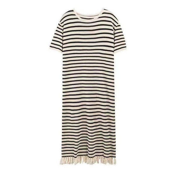 Black Knit Striped Dress Short Sleeve Women Dress maxi dress