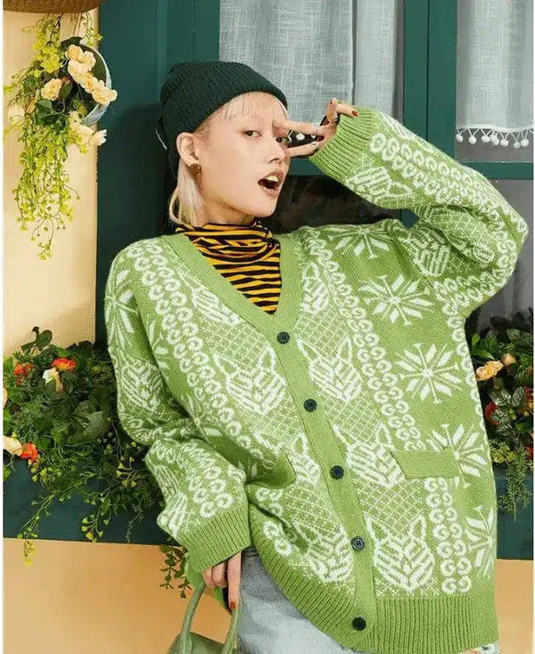 Neulottu kuviollinen neuletakki, jossa on nappisuljenta