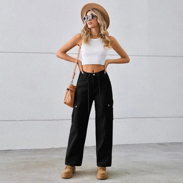 Denim Drawstring Adjustable Washed Overalls Casual Women