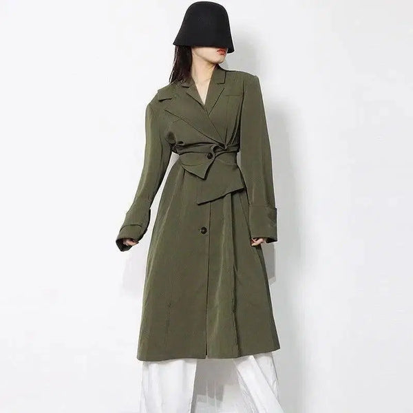 Tuotteen kuvaus: Epäsäännöllinen-panel yksi-rintainen läppä pitkä takki