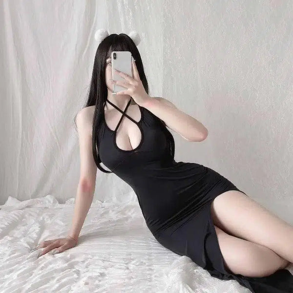 Tuotteen kuvaus: Syvä V-kaula-aukkoinen iltapuku