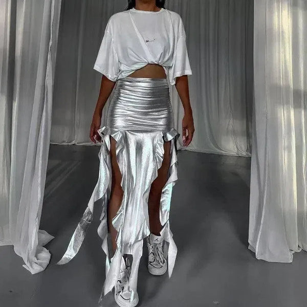 European And American Ribbon Tassel Reflective PU Fishtail