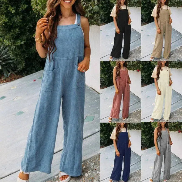 Fashion Square Neck Jumpsuit With Pockets Spring Summer Casual Solid Color Loose Overalls Womens Clothing
