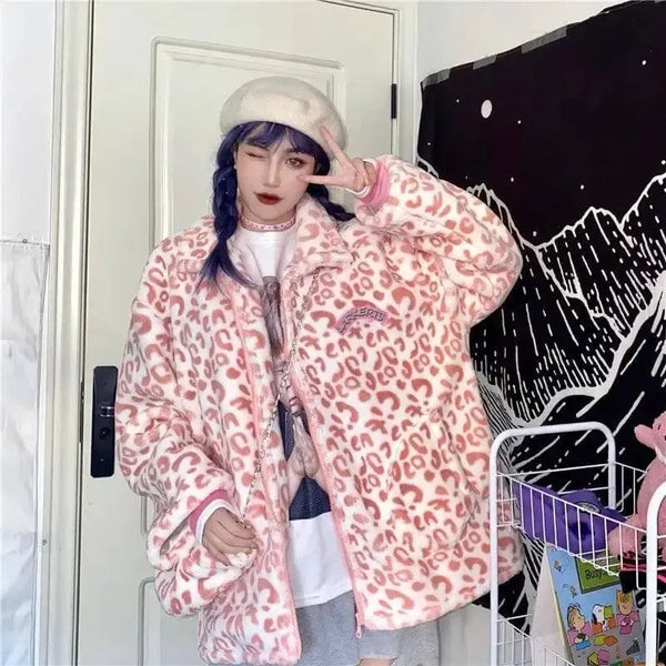 Korean versio vaaleanpunainen lampaanvilla löysä topattu talvitakki