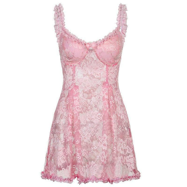 Product Description: Lace Perspective Lace Camisole Dress with V-Neck