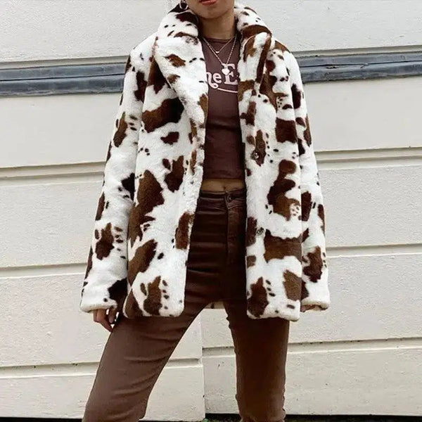 - Materiaali: : Ylellinen kaninturkki, jossa on erottuva lehmäkuvio .
