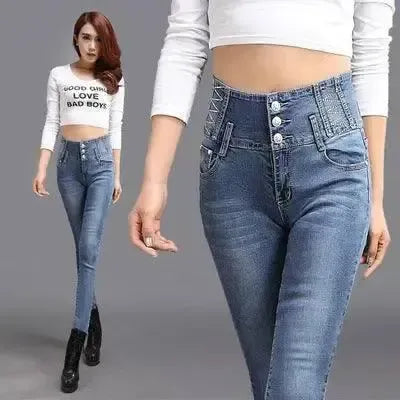 uusi korkea vyötärö solki stretch farkut naisten Korean