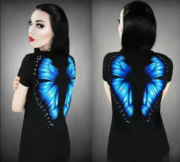 - Suunnittelun piirre: Silmiinpistävä perhosen siiven grafiikka selässä