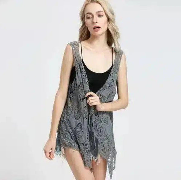 Boheemi virkattu pitsinen villatakki
