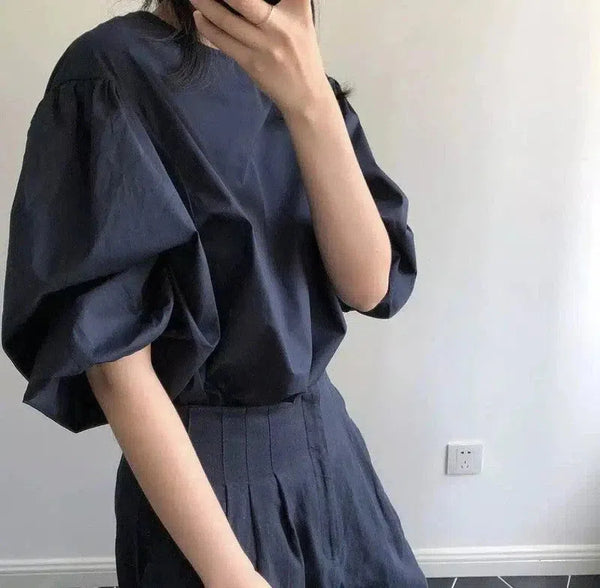 Pakkahihainen pusero Korkea vyötärö housut asetettu