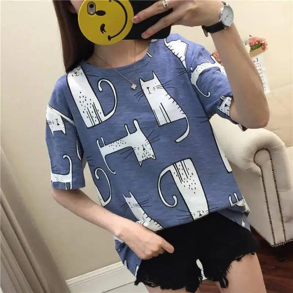 Kissa tulosta lyhythihainen t-paita punainen Student Base Top