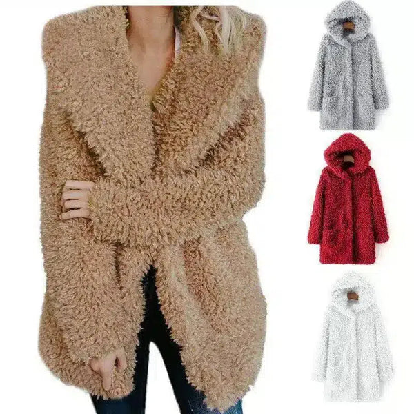 Pörröinen hupullinen naisten talvitakki