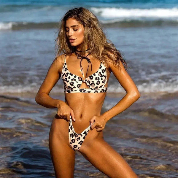 - Poikkileikkaus: Kaksiosaiset bikinit, joissa on klassinen kolmiomainen ylä- ja alaosa