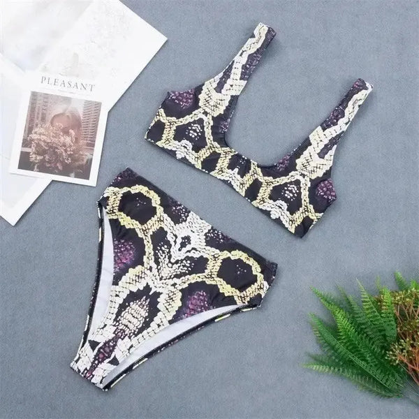 - Muotoilu: Kaksiosainen bikinisetti, jossa on tyylikäs eläinkuvio.