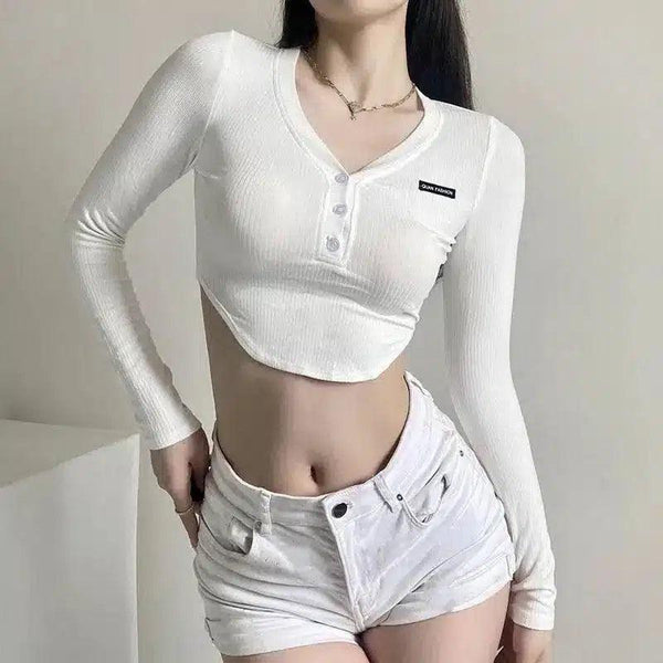 Naisten Ribbed Crop Top, jossa on napin yksityiskohdat