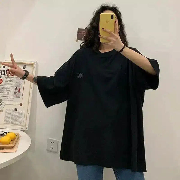 Ylimitoitettu puuvillainen tee, jossa on hihat yksityiskohtaisesti