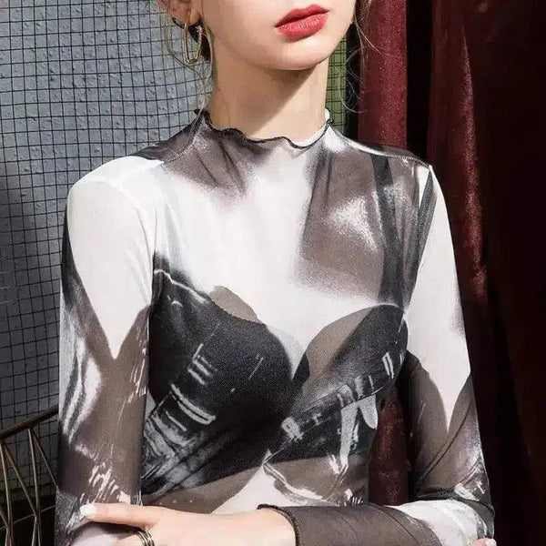 Hihansuunnittelu: Pitkät hihat täydentävät korkeakaulaista tyyliä, mikä antaa tyylikkään ja tasapainoisen ilmeen. Hihat ovat tiukat, mikä korostaa käsivarsien muotoa ja lisää topin tyylikästä estetiikkaa.
