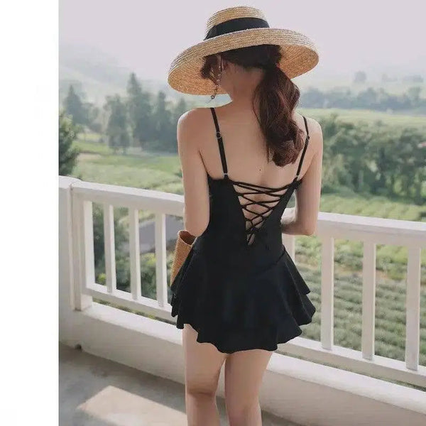 - Muotoilu: Elegantti yksiosainen uimapuku, jossa on naisellinen hameenpäällinen