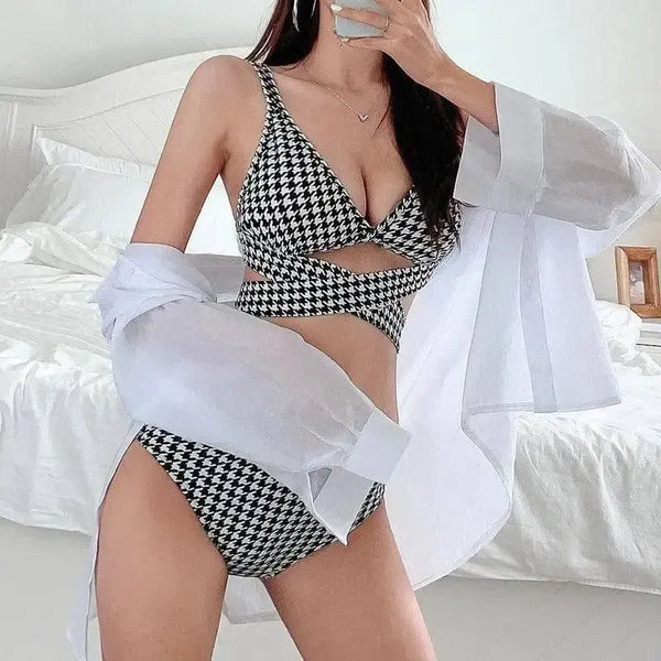 Tuotteen kuvaus: Houndstooth Cross-Tie Uimapuku Bikini