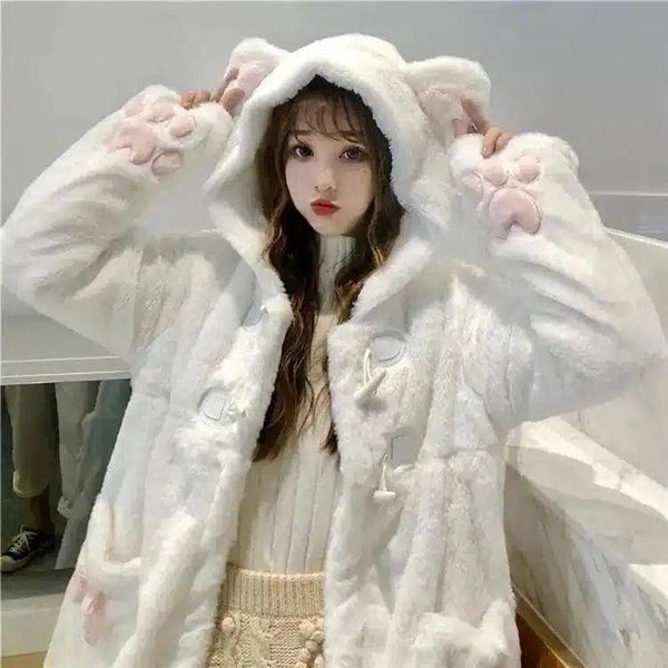 Hupullinen söpö kissa korvat puuvilla topattu takki naiset