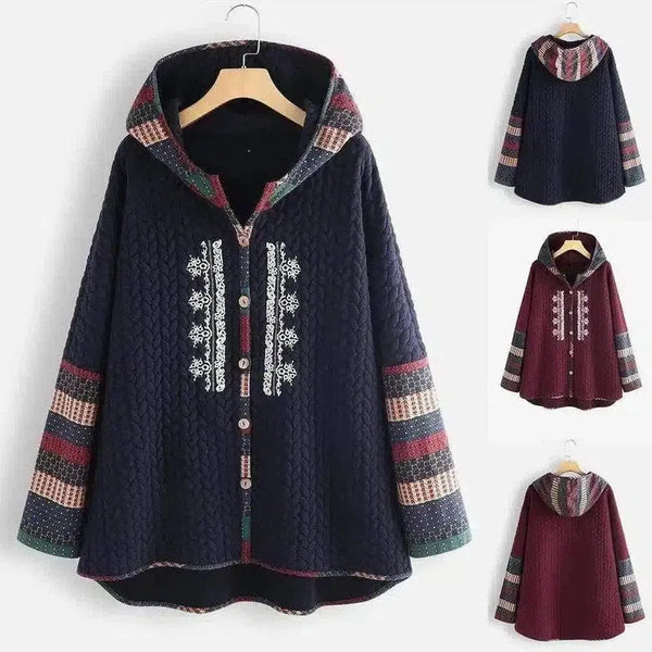 - Kaula-aukko tai hartiatyyli: Hupullinen, kuvioidulla sisävuorella