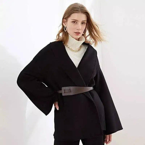 Kaksipuolinen kashmir-takki, jossa on villavyö