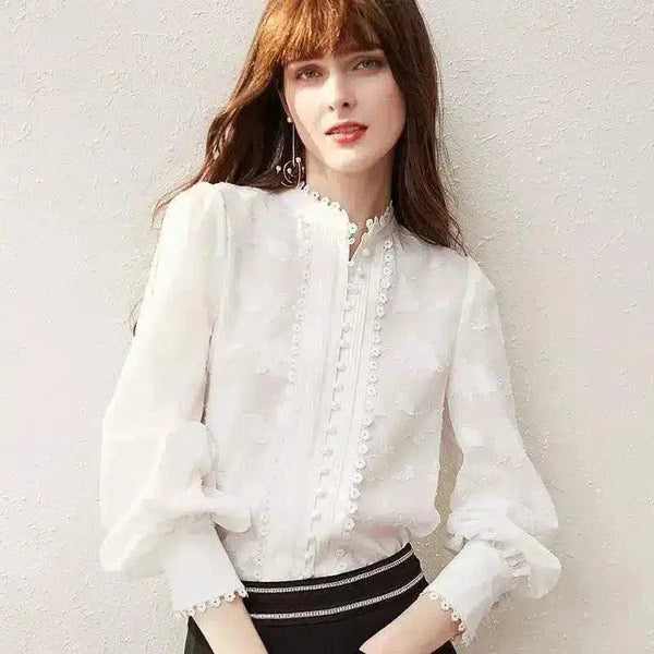 - Elegantti Sheer Blouse - Valmistettu kevyestä, puoliksi läpinäkyvästä kankaasta, joka tarjoaa herkän ja naisellisen kosketuksen vaatekaappiisi.