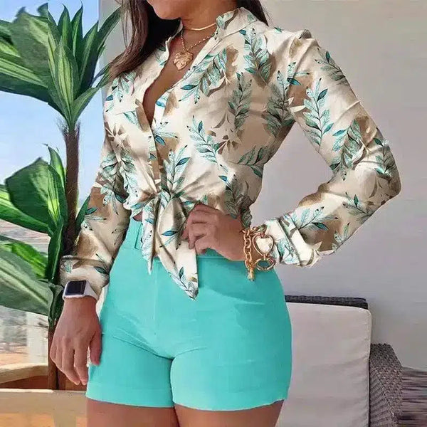 Kukkakuvioinen solmiopusero ja sovitetut shortsit setti
