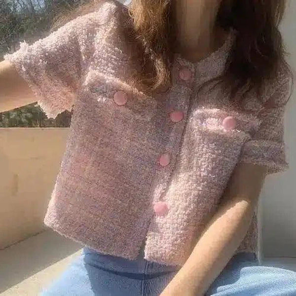 - Suunnittelun yksityiskohdat: Sisältää kaksi rintataskua ja leikkisät vaaleanpunaiset napit