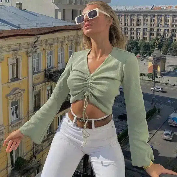 Naisten Tie-Front V-kaula-aukkoinen Cropped Topi