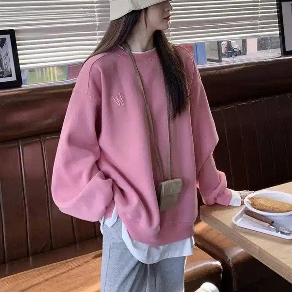 Korean versio löysä ohut kevät väärennös kaksi kappaletta huppari huppari