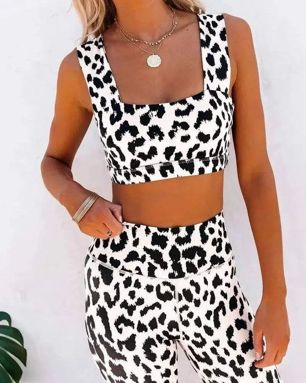 Tässä tyylikkäässä crop topissa on rohkea leopardikuvio, joka sopii täydellisesti trendikkääseen ja urheilulliseen lookkiin.