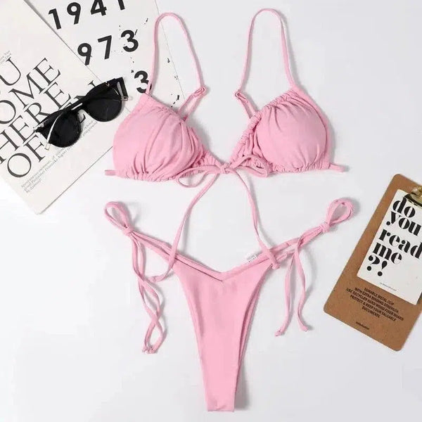 Hyvät uimapuku yksivärinen split kiristysnauha stringit stringit