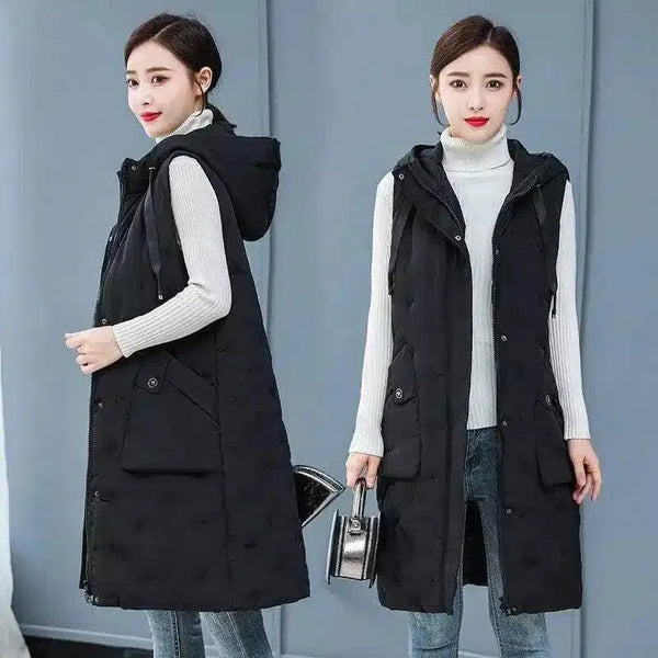 Naisten hihaton hupullinen liivi, jossa on taskut