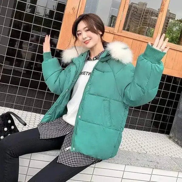 Talvella pehmustettu takki, jossa on turkis-huppu