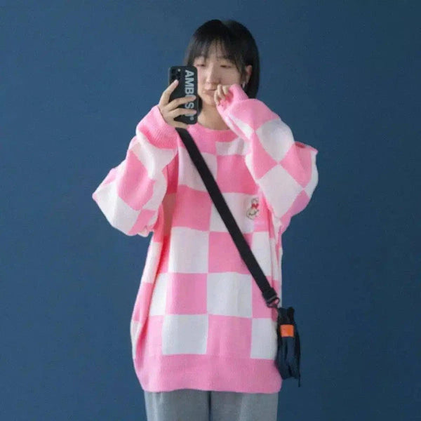 Pitkähihainen ruudullinen villapaita, jossa on pitkät hihat