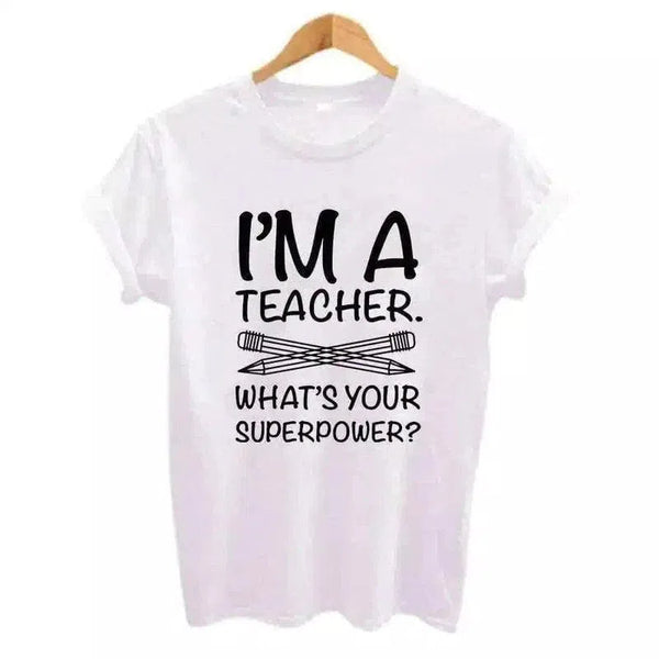 - Muotoilulliset ominaisuudet: Liivi: Muotoilulliset ominaisuudet: Malli: Etupuolella on rohkea typografinen painatus, jossa on lause "I'M A TEACHER". WHAT'S YOUR SUPERPOWER?" ja tekstin alapuolella graafinen kuva kahdesta ristikkäisestä kynästä.