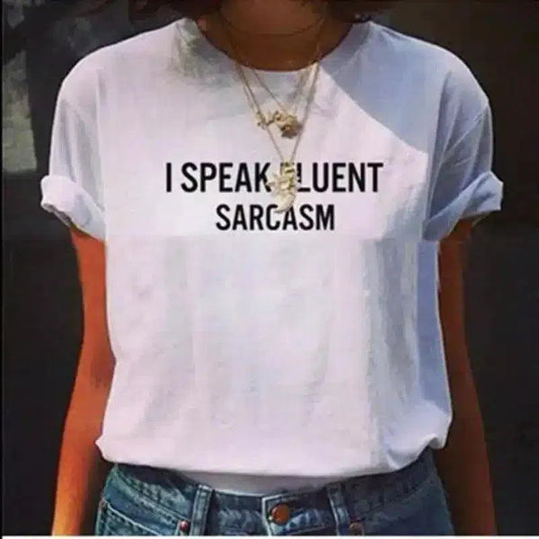 Bold Statement Print: Tee kannanotto leikkisällä "I SPEAK FLUENT SARCASM" -painatuksella, joka herättää keskustelua ja osoittaa nokkelan persoonallisuutesi.
