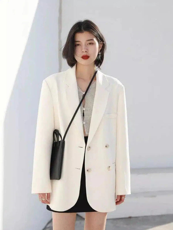 Naisten kaksirivinen bleiseri ja olkalaukku