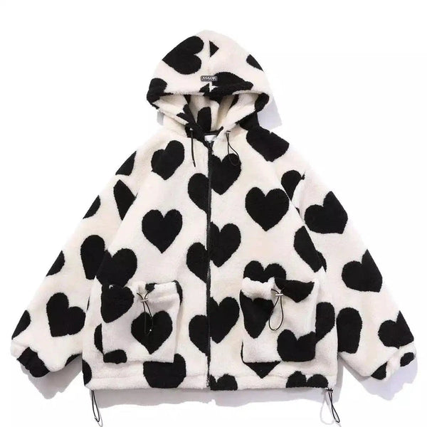- Suunnittelu: Rohkea musta sydänkuvio kermanvärisellä pohjalla