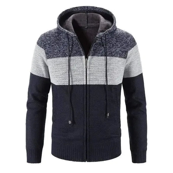 Miehet villapaita paksu vetoketju villa villapaitoja hupullinen raita takki
