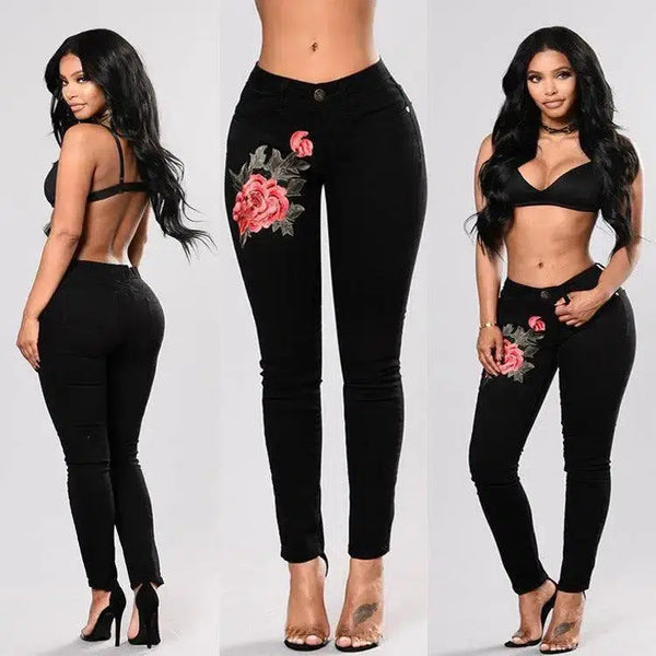 Mustat farkut, joissa on kirjaillut jalat