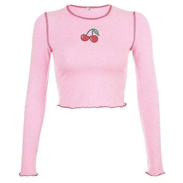 Naisten pitkähihainen Crop Top Cherry Designilla