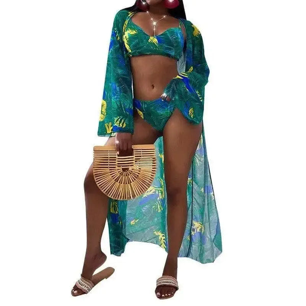 Naisten kolmiosainen painettu bikinit Split uimapuku Naiset