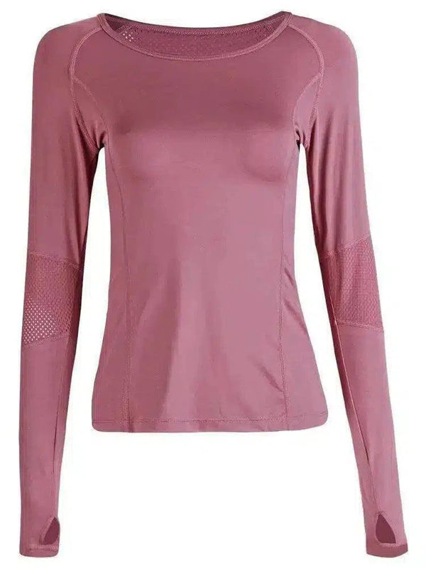Naisten pitkähihainen urheilullinen toppi, jossa on verkkopaneelit