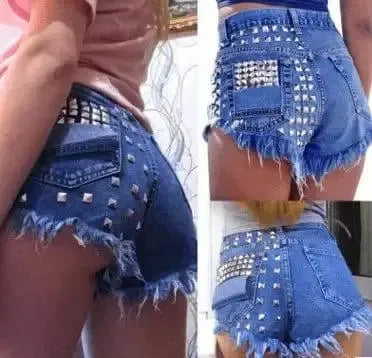 Naisten revitty farkut roikkuva shortsit niitti kuuma housut