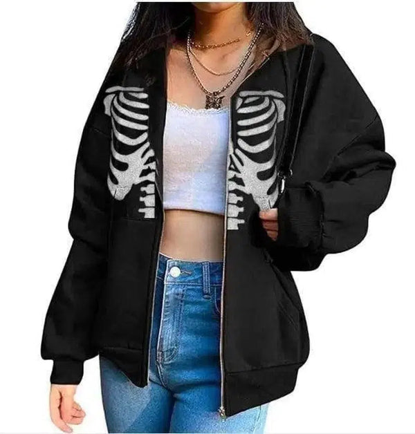Naisten Streetwear hupullinen takki luuranko tulosta takki löysä