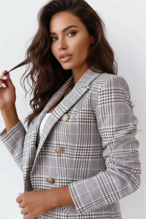 Naisten syksyn Top löysä pitkähihainen ruudullinen bleiseri