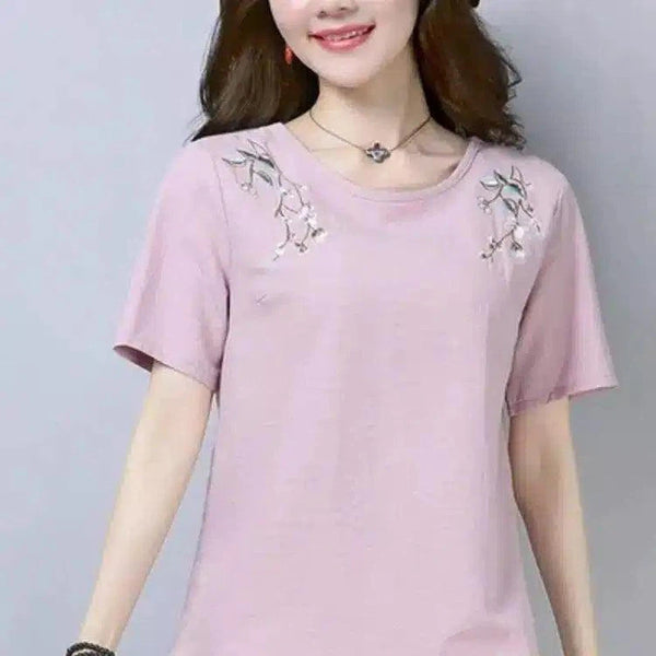 Naisten kirjailtu rento t-paita