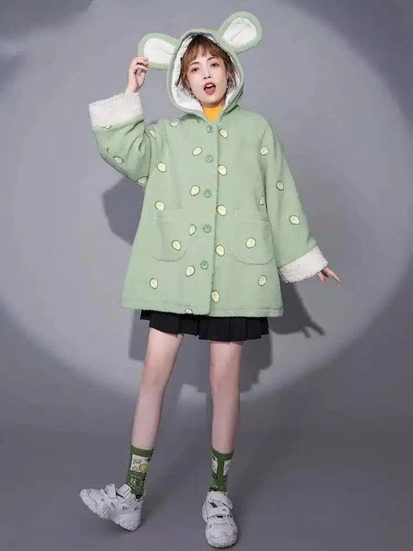 Painettu sarjakuvakuvioinen hupullinen lampaanvillatakki